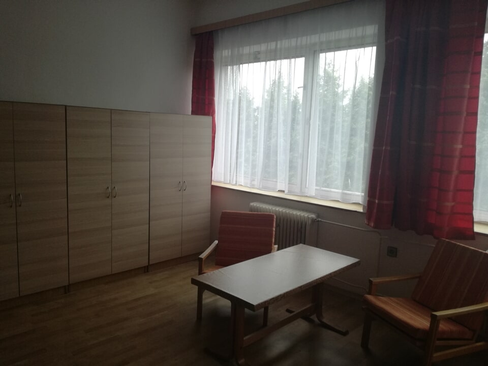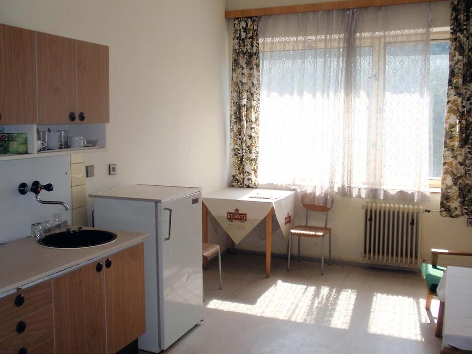 V prvním patře ubytovny se nachází společné sociální zařízení pro dva pokoje. Umístěna je zde i malá kuchyňka a společenská místnost s televizí. V druhém patře ubytovny je jedno sociální zařízení pro všechny pokoje.